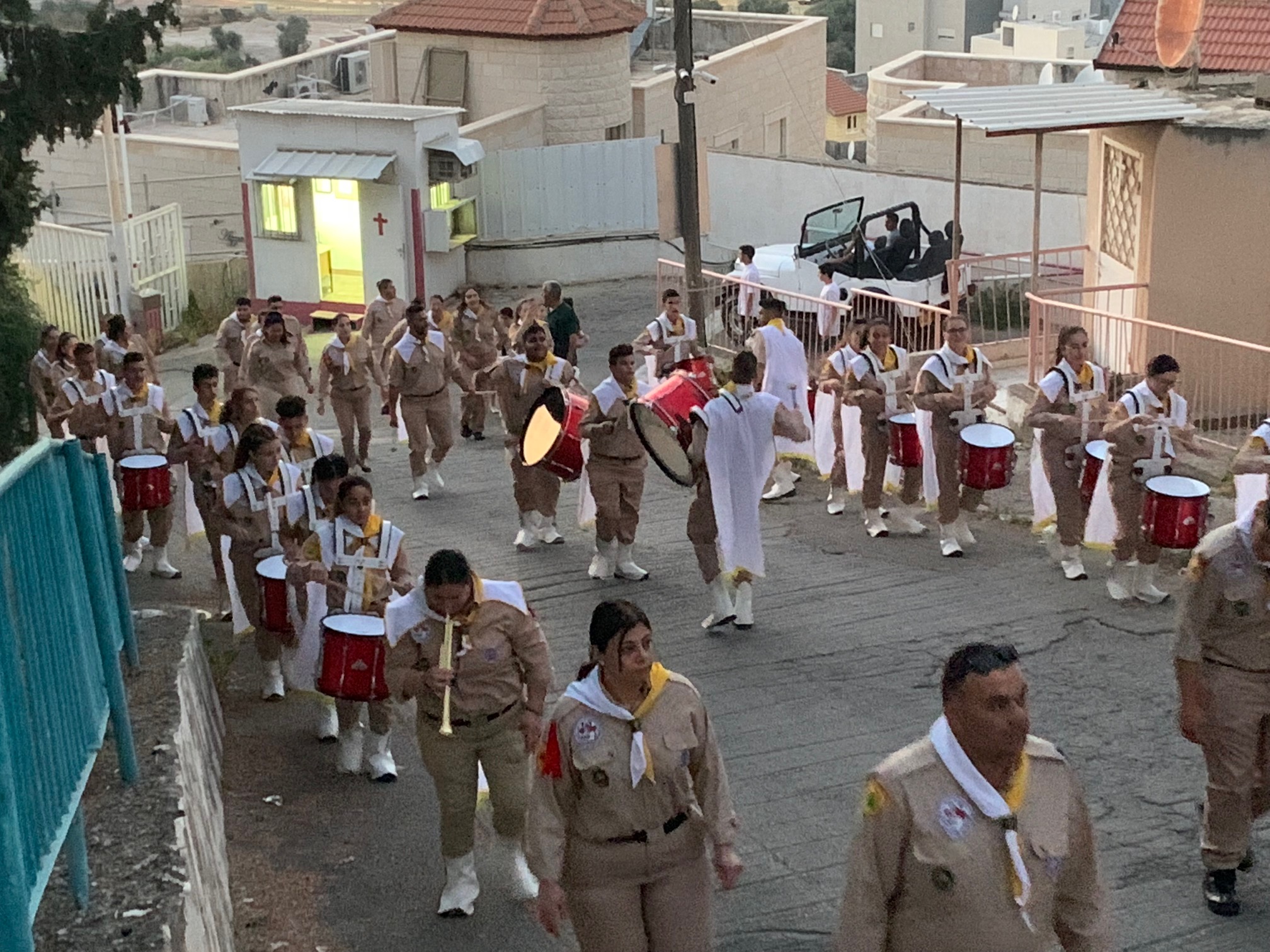 There have been a couple of parades over the last couple of days and as I witnessed in Haifa the parades have been made up primarily of local scout troops loudly (very loudly!!) banging drums. One such parade made its way down the main streets of Ibillin earlier in the week entering the grounds of the school and was then followed by a Mass at the Church in the school grounds. The school and its grounds are used by local community and as its one of the few relatively flat areas around it is busy with people wearing sports clothes and doing laps of the grounds in the evenings. The sports courts are also open to anyone who wants to use then so there are often a few young people throwing a ball around the basketball courts…such facilities are rare here so it’s great that the young people (and others) can easily access them.